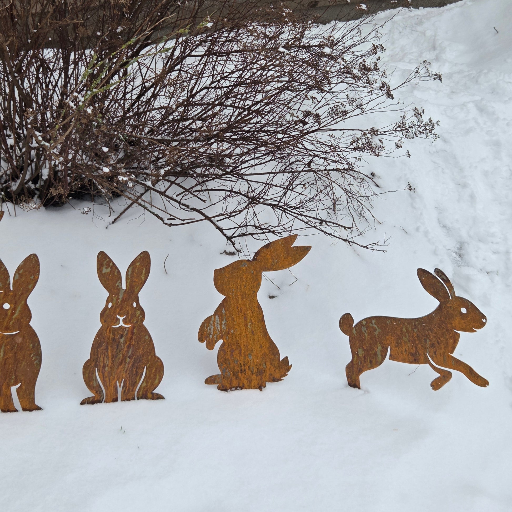 Eine dekorative Metallfigur mit natürlichem Charme, die jedem Außenbereich eine lebendige und rustikale Note verleiht.